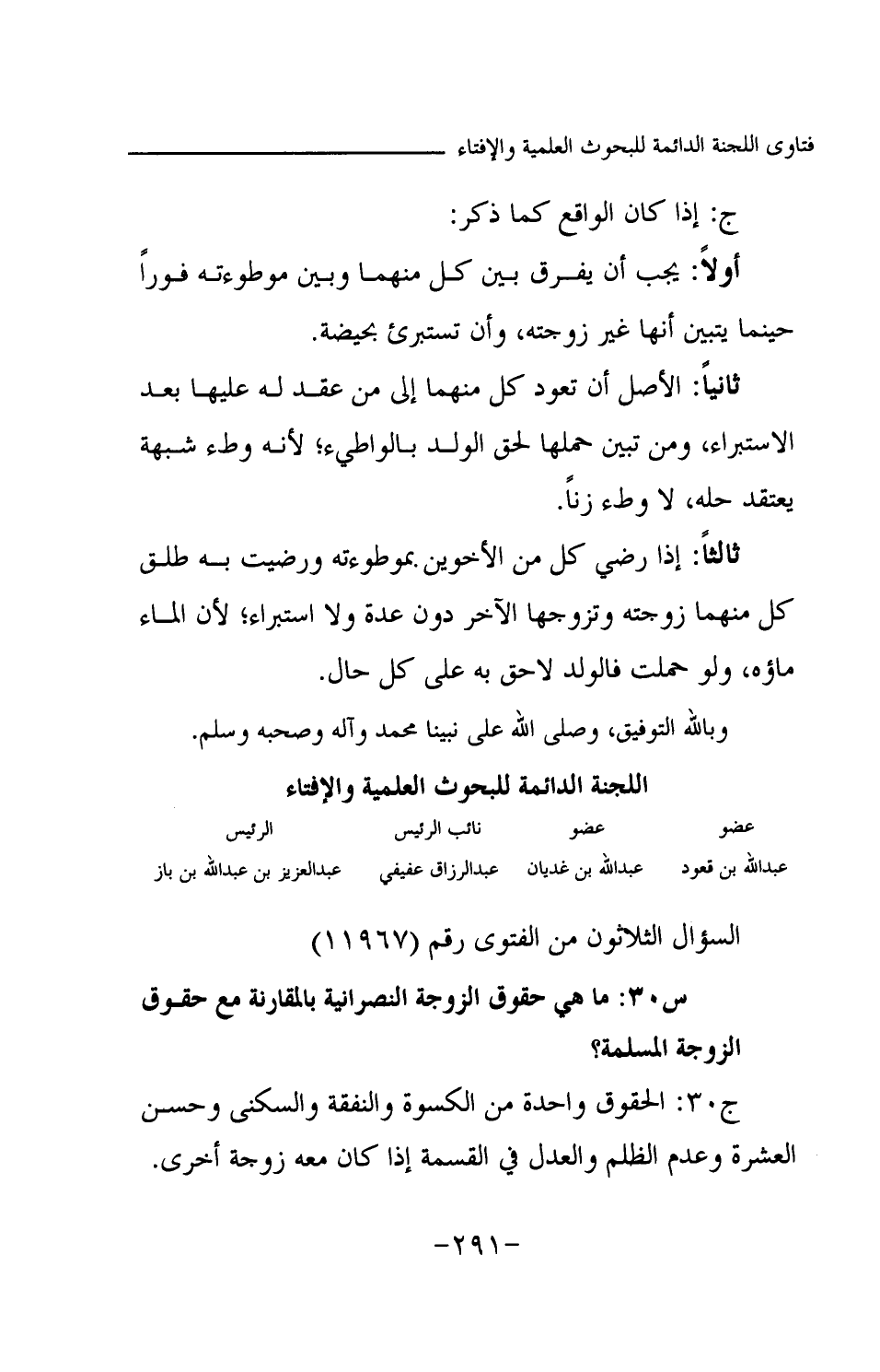 س 30: ما هي حقوق الزوجة النصرانية بالمقارنة مع حقوق الزوجة المسلمة؟