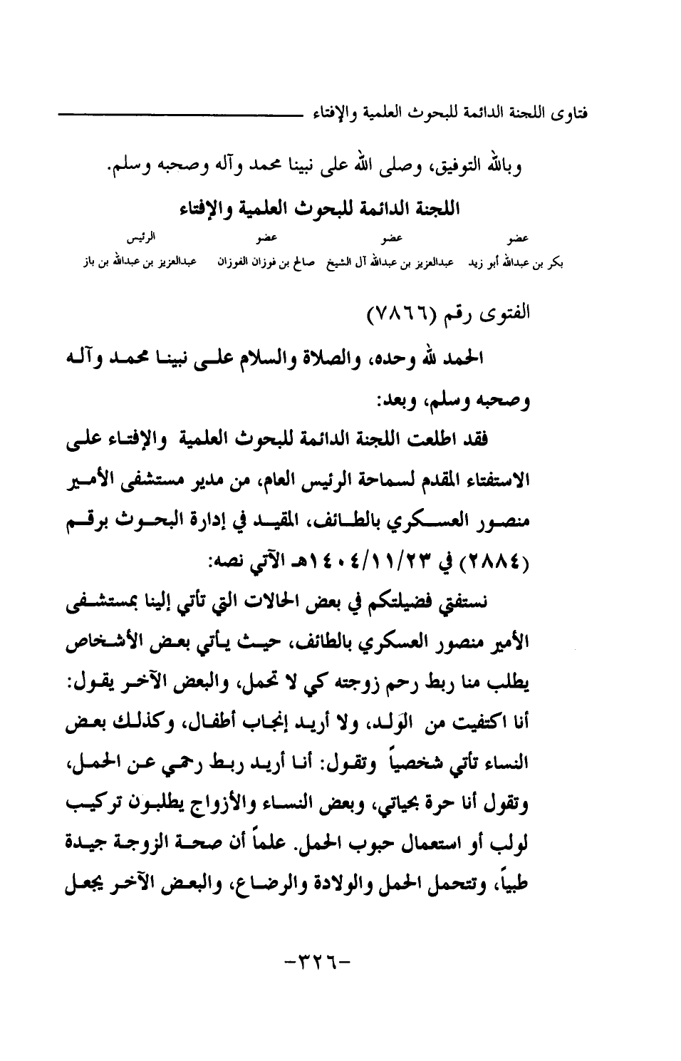 فقد اطلعت اللجنة الدائمة للبحوث العلمية والإفتاء على الاستفتاء المقدم لسماحة الرئيس العام، من مدير مستشفى الأمير منصور العسكري بالطائف المقيد في إدارة البحوث برقم (2884) في 23 \ 11 \ س1404 هـ الآتي نصه: