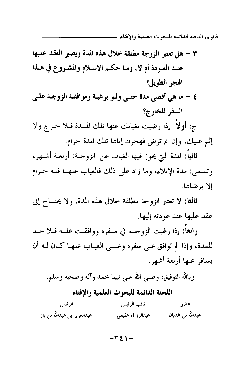 4 - ما هي أقصى مدة حتى ولو برغبة وموافقة الزوجة على السفر للخارج؟