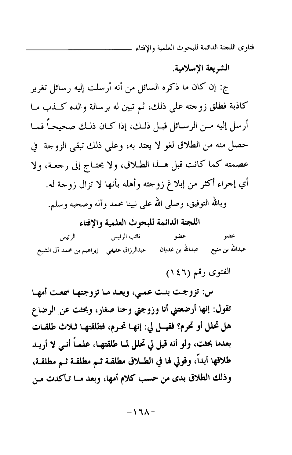 عبد الله بن منيع ... عبد الله بن غديان ... عبد الرزاق عفيفي ... إبراهيم بن محمد آل الشيخ