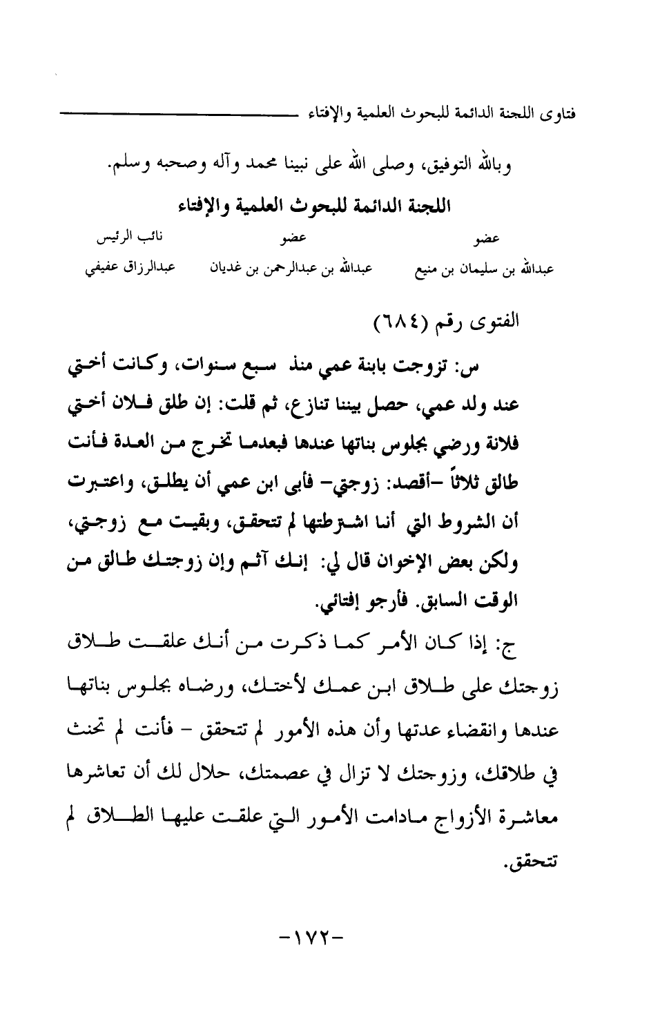 عبد الله بن سليمان بن منيع ... عبد الله بن عبد الرحمن بن غديان ... عبد الرزاق عفيفي