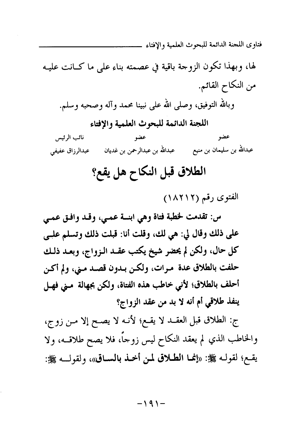 عبد الله بن سليمان بن منيع ... عبد الله بن عبد الرحمن بن غديان ... عبد الرزاق عفيفي