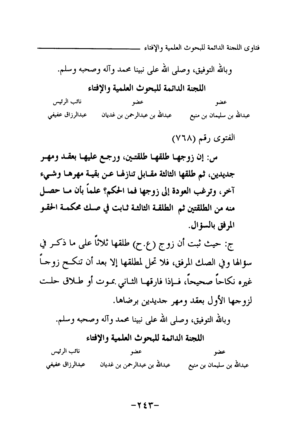 عبد الله بن سليمان بن منيع ... عبد الله بن عبد الرحمن بن غديان ... عبد الرزاق عفيفي