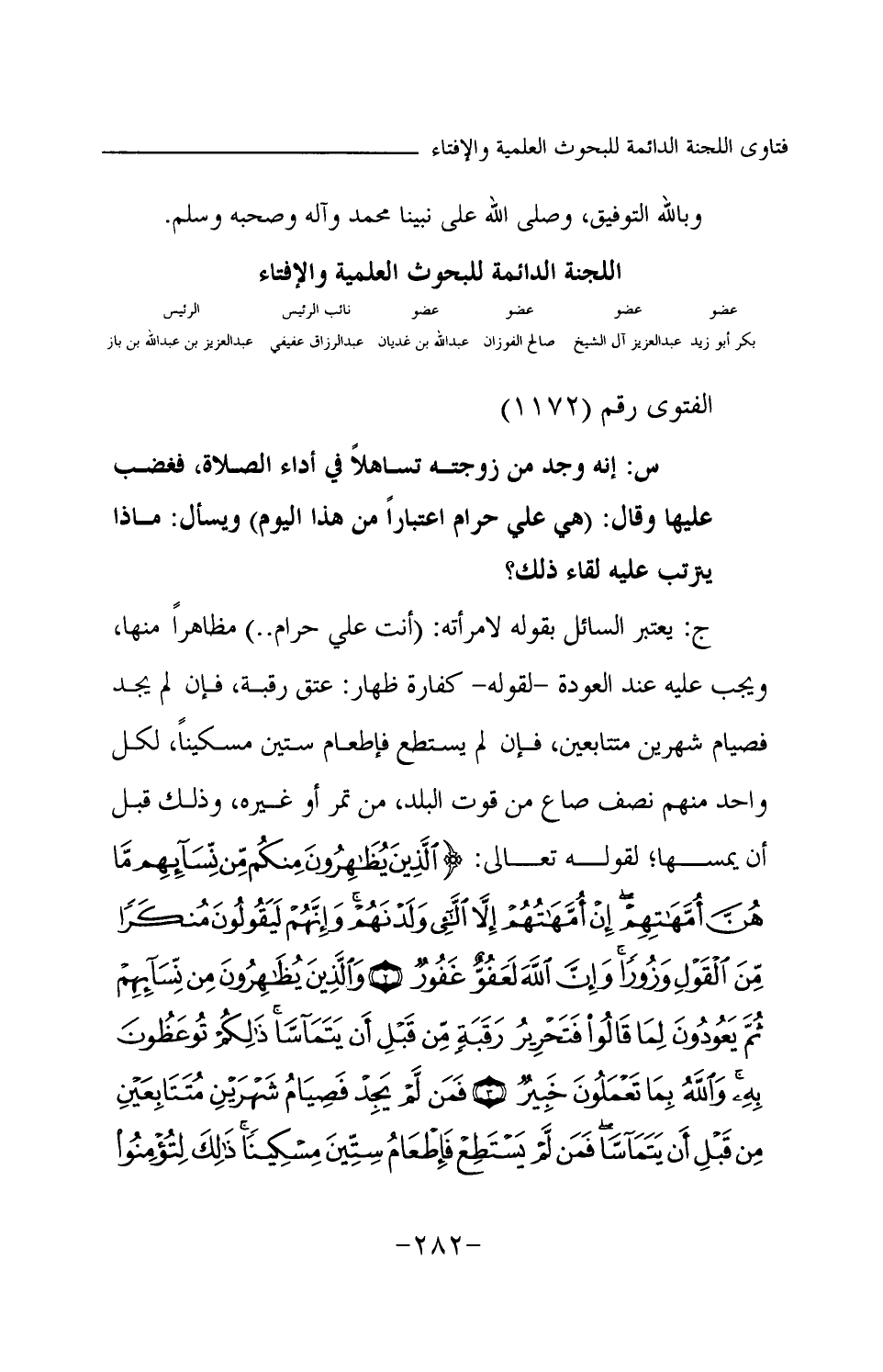 بكر أبو زيد ... عبد العزيز آل الشيخ ... صالح الفوزان ... عبد الله بن غديان ... عبد الرزاق عفيفي ... عبد العزيز بن عبد الله بن باز
