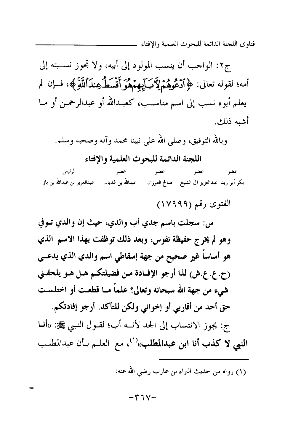 بكر أبو زيد ... عبد العزيز آل الشيخ ... صالح الفوزان ... عبد الله بن غديان ... عبد العزيز بن عبد الله بن باز