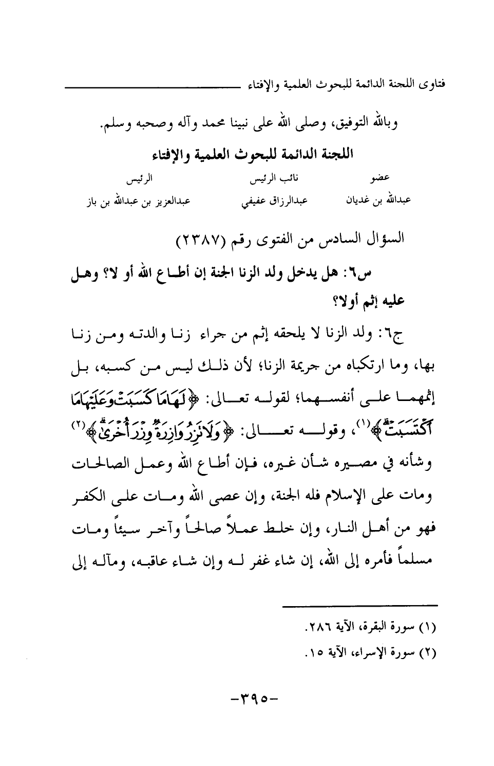 السؤال السادس من الفتوى رقم (2387)