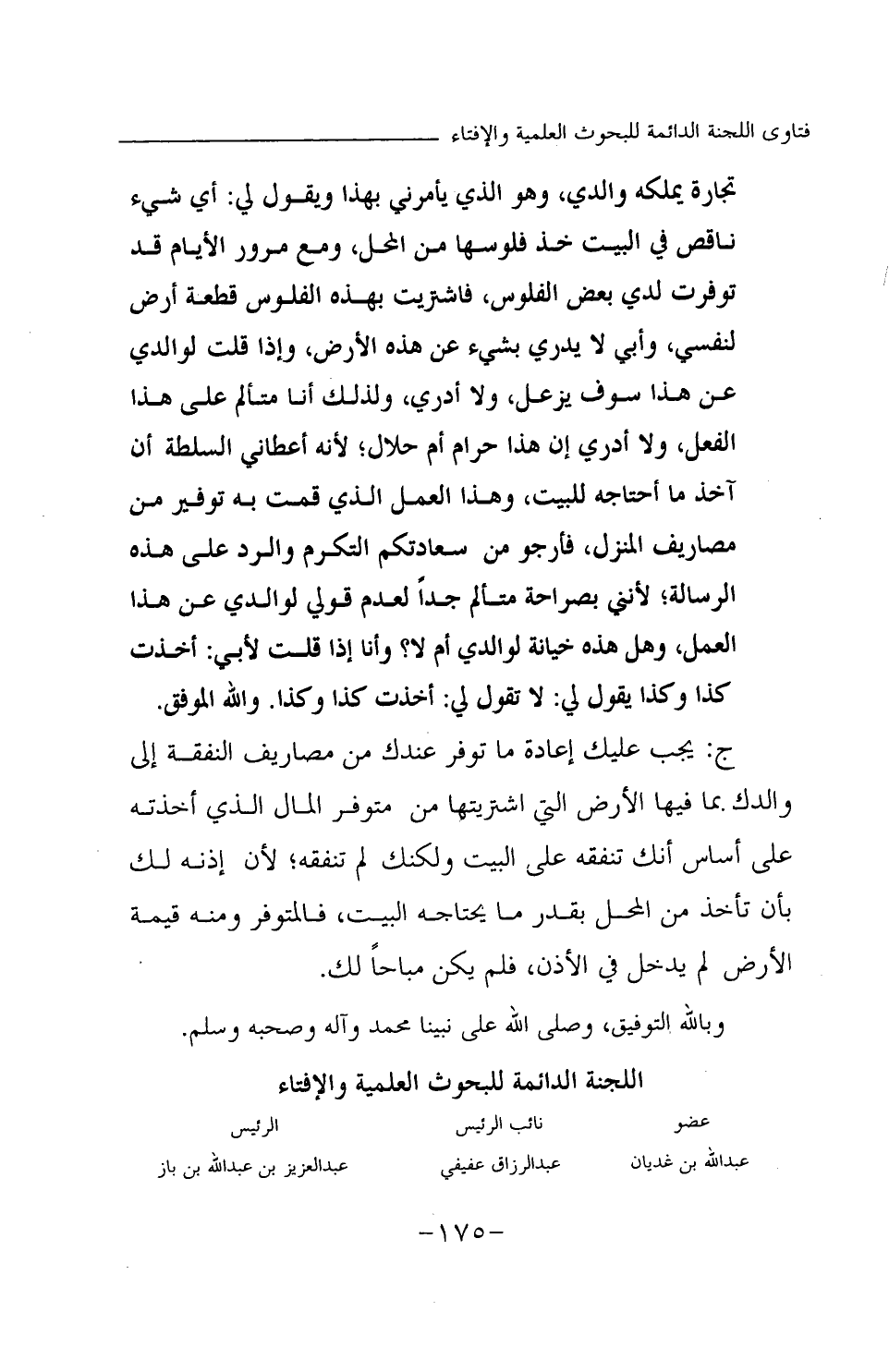 ج: يجب عليك إعادة ما توفر عندك من مصاريف النفقة إلى والدك بما فيها الأرض التي اشتريتها من متوفر المال الذي أخذته على أساس أنك تنفقه على البيت ولكنك لم تنفقه؛ لأن إذنه لك بأن تأخذ من المحل بقدر ما يحتاجه البيت، فالمتوفر ومنه قيمة الأرض لم يدخل في الإذن، فلم يكن مباحا لك.