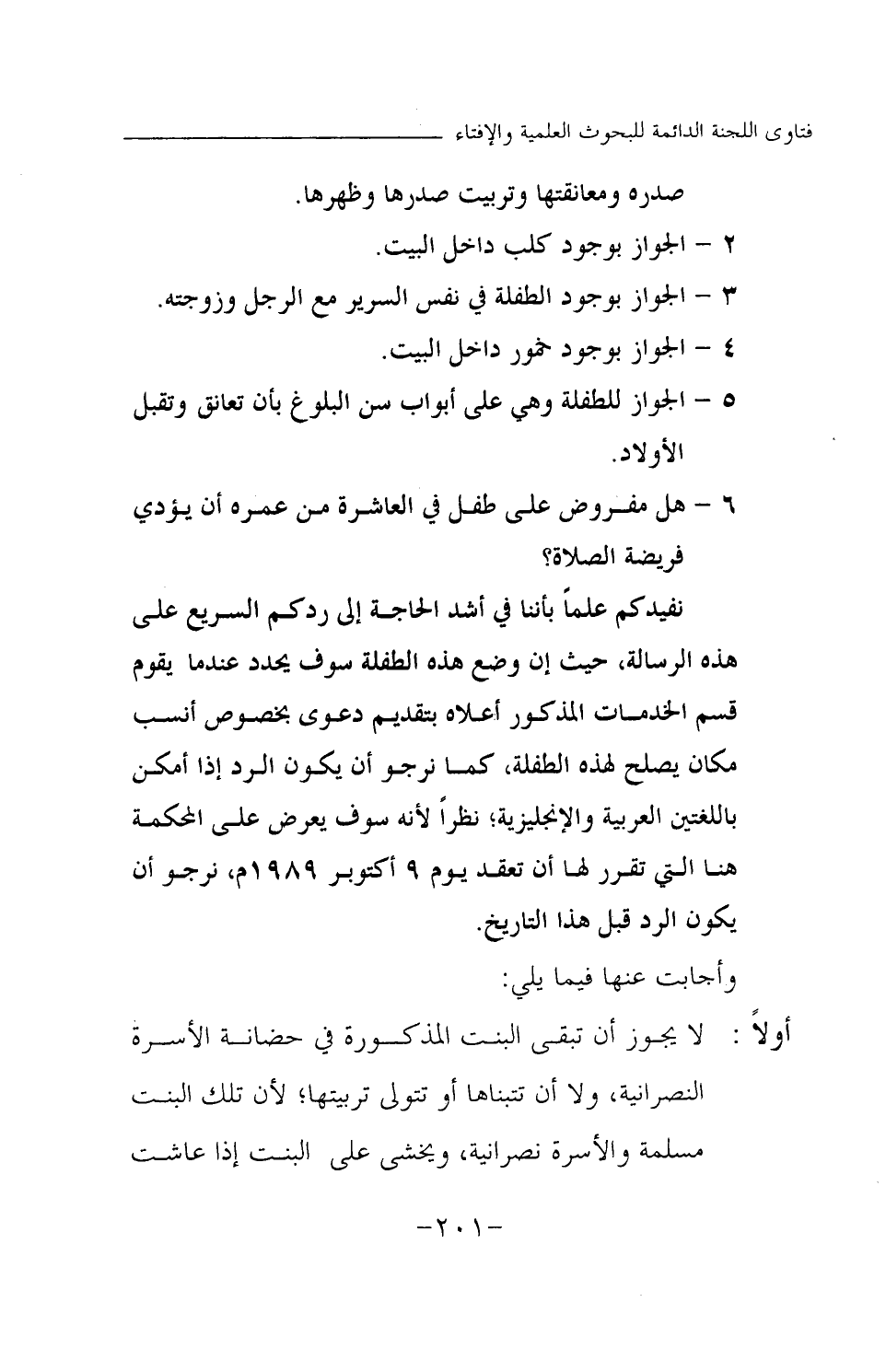 3 - الجواز بوجود الطفلة في نفس السرير مع الرجل وزوجته.