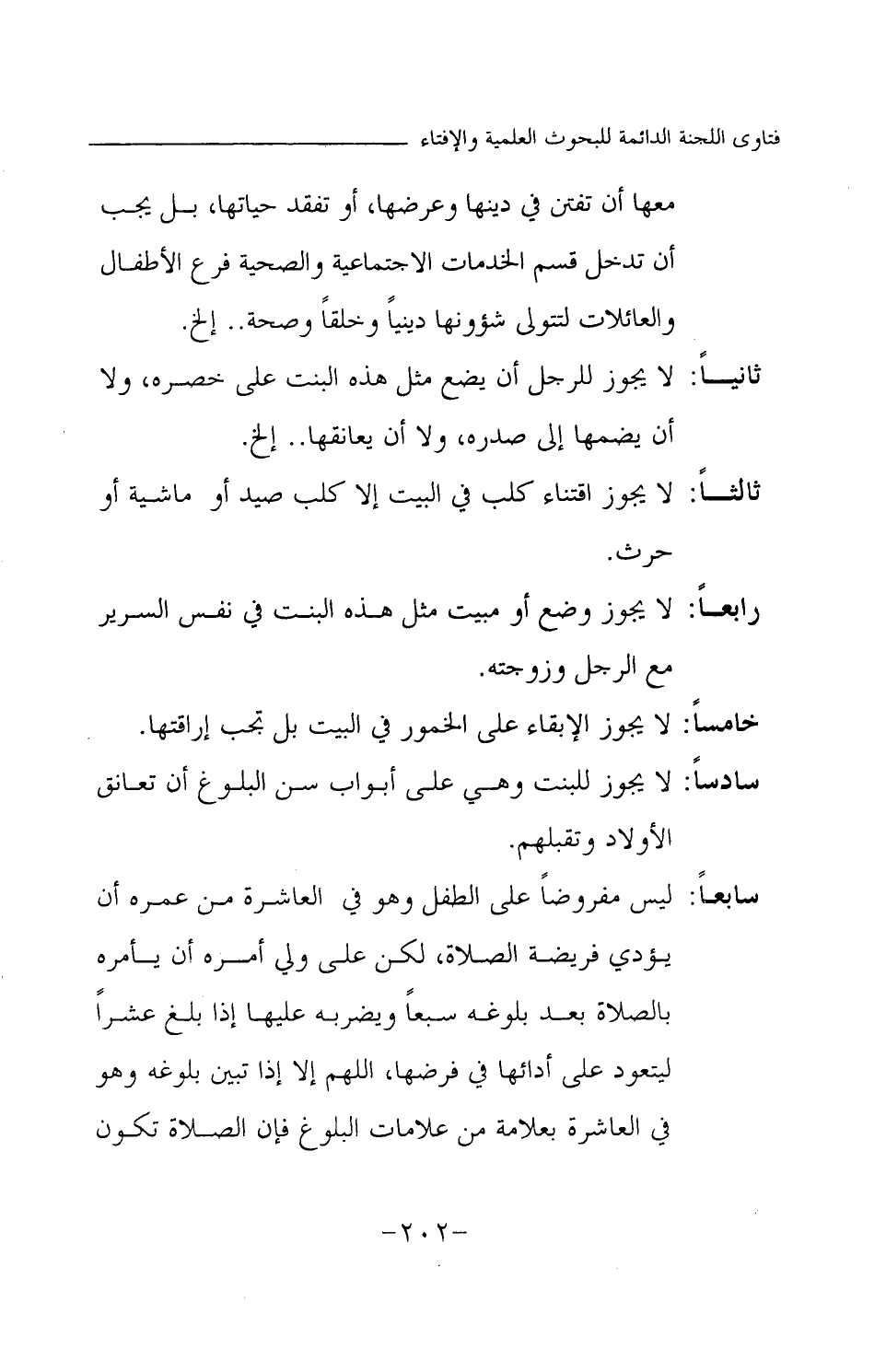 سادسا: لا يجوز للبنت وهي على أبواب سن البلوغ أن تعانق الأولاد وتقبلهم.