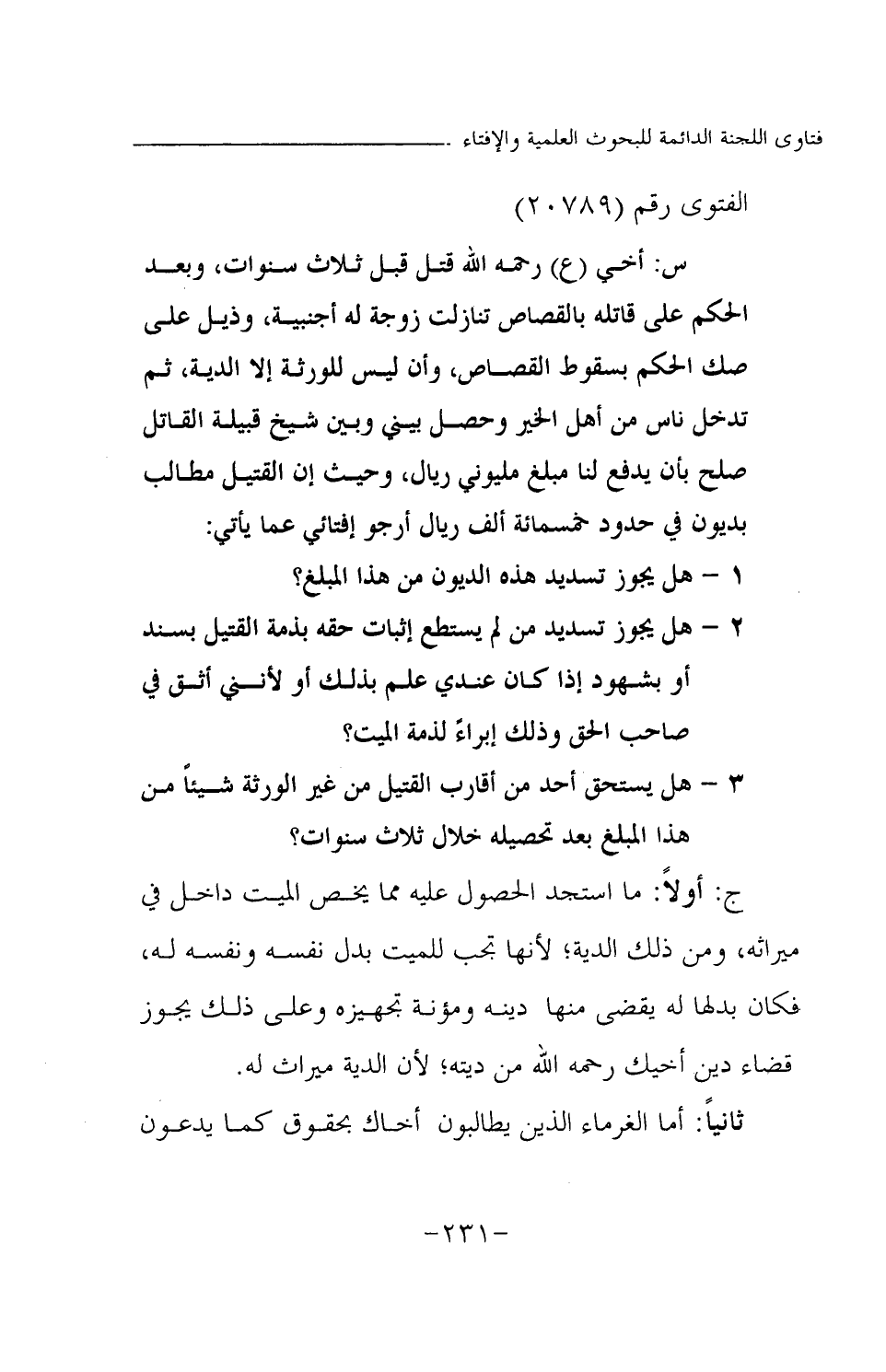3 - هل يستحق أحد من أقارب القتيل من غير الورثة شيئا من هذا المبلغ بعد تحصيله خلال ثلاث سنوات؟