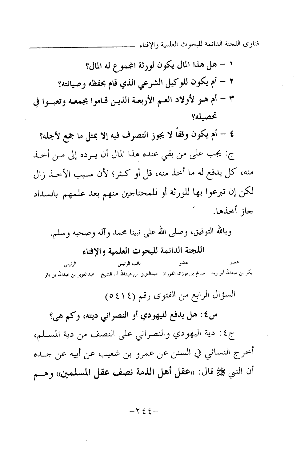 السؤال الرابع من الفتوى رقم (5414)