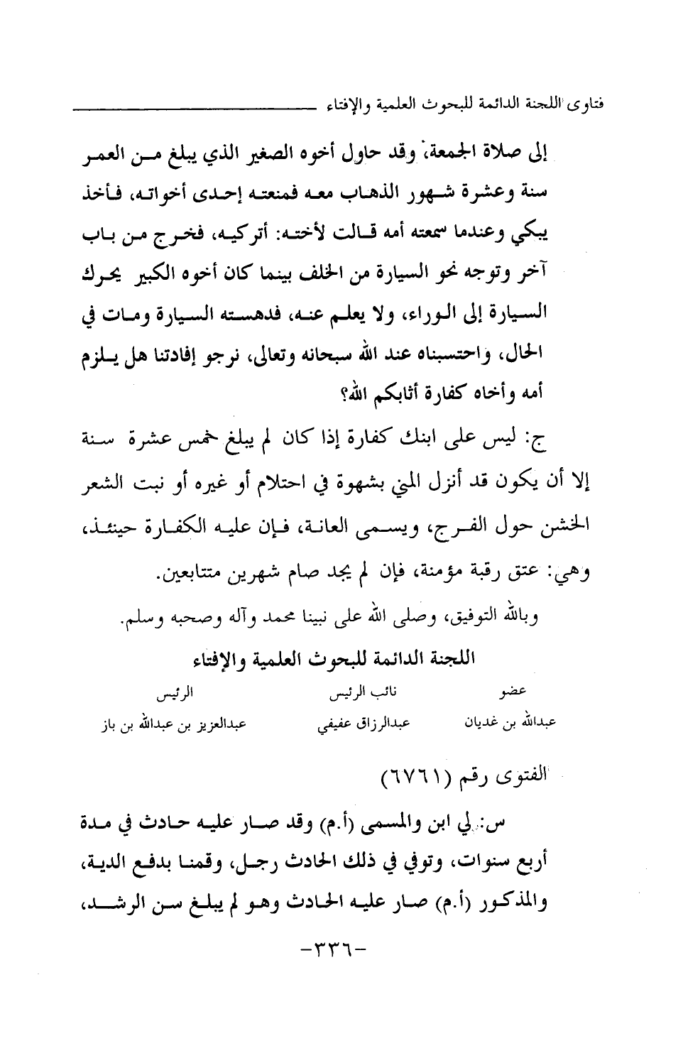 إلى صلاة الجمعة، وقد حاول أخوه الصغير الذي يبلغ من العمر سنة وعشرة شهور الذهاب معه فمنعته إحدى أخواته، فأخذ يبكي وعندما سمعته أمه قالت لأخته: اتركيه، فخرج من باب آخر وتوجه نحو السيارة من الخلف بينما كان أخوه الكبير يحرك السيارة إلى الوراء، ولا يعلم عنه، فدهسته السيارة ومات في الحال، واحتسبناه عند الله سبحانه وتعالى، نرجو إفادتنا هل يلزم أمه وأخاه كفارة أثابكم الله؟