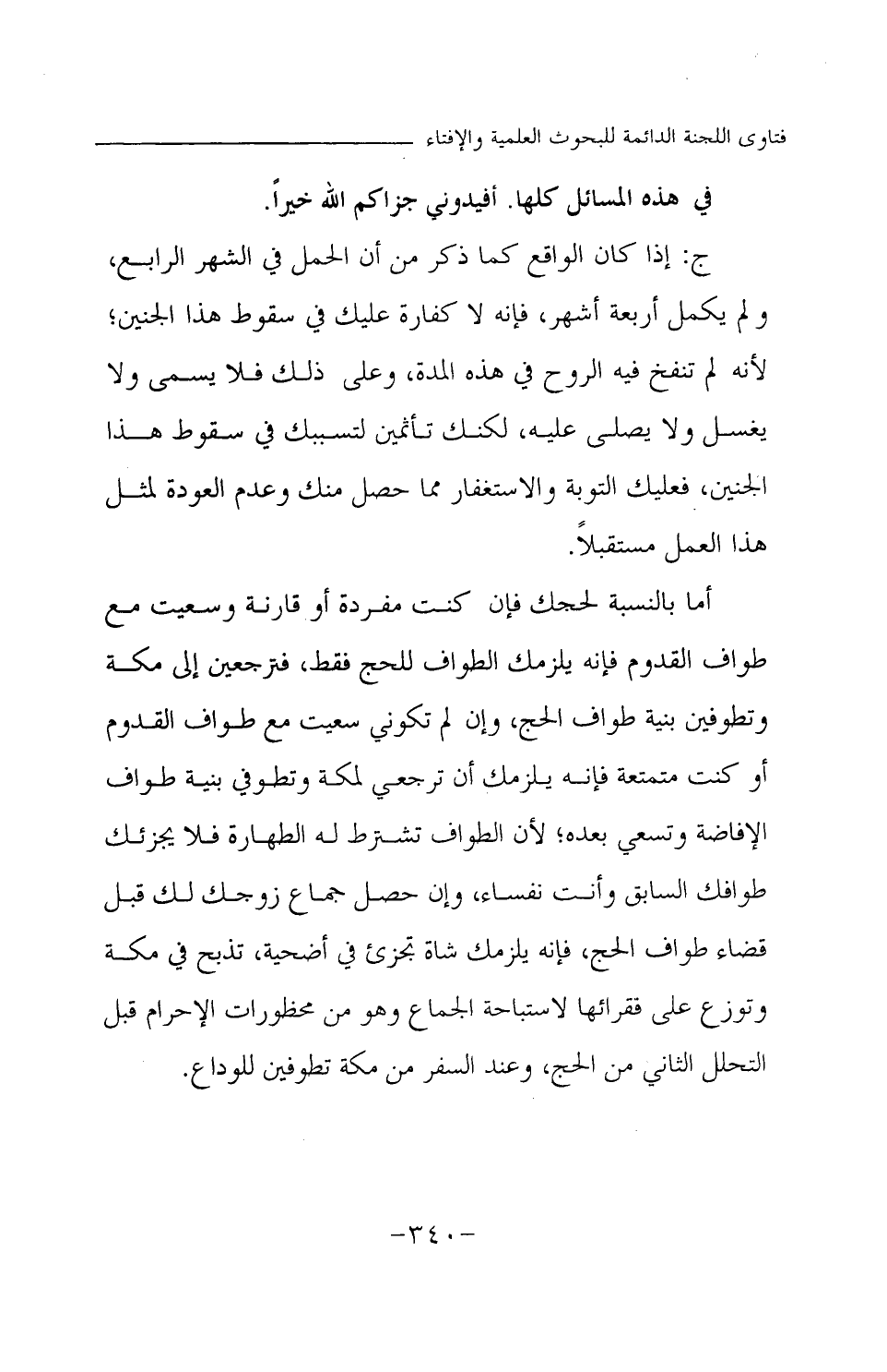 ج: إذا كان الواقع كما ذكر من أن الحمل في الشهر الرابع، ولم يكمل أربعه أشهر، فإنه لا كفارة عليك في سقوط هذا الجنين؛ لأنه لم تنفخ فيه الروح في هذه المدة، وعلى ذلك فلا يسمى ولا يغسل ولا يصلى عليه، لكنك تأثمين لتسببك في سقوط هذا الجنين، فعليك التوبة والاستغفار مما حصل منك وعدم العودة لمثل هذا العمل مستقبلا.