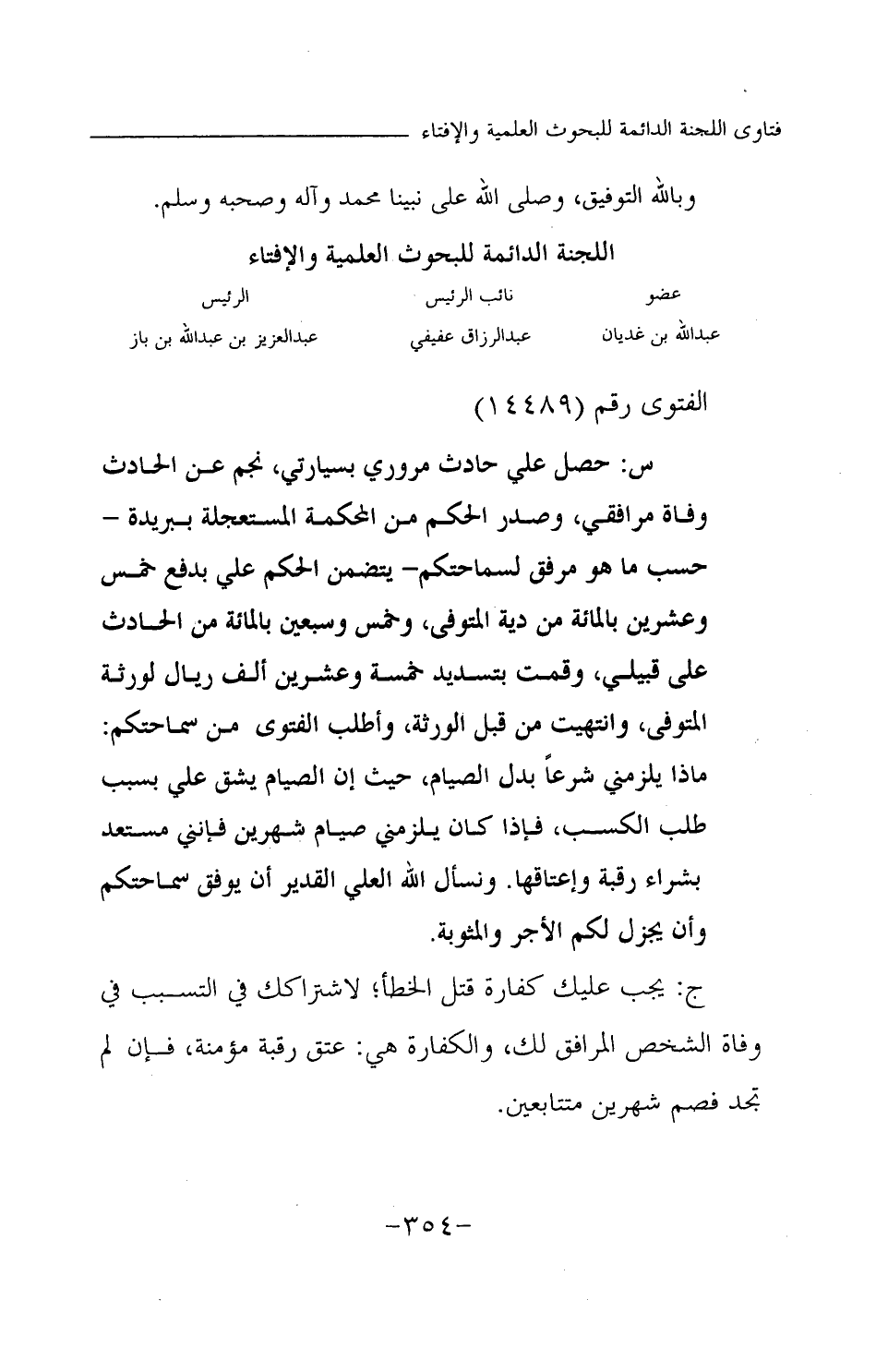 س: حصل علي حادث مروري بسيارتي، نجم عن الحادث وفاة مرافقي، وصدر الحكم من المحكمة المستعجلة ببريدة- حسب ما هو مرفق لسماحتكم- يتضمن الحكم علي بدفع خمس وعشرين بالمائة من دية المتوفى، وخمس وسبعين بالمائة من الحادث على قبيلي، وقمت بتسديد خمسة وعشرين ألف ريال لورثة المتوفى، وانتهيت من قبل الورثة، وأطلب الفتوى من سماحتكم: