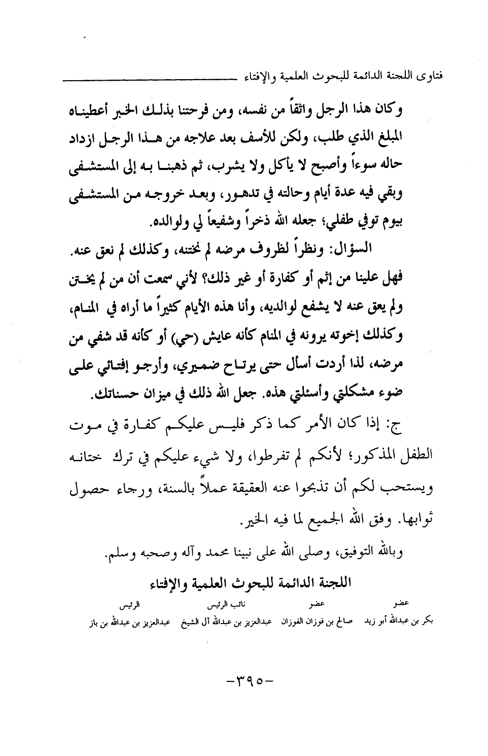 ج: إذا كان الأمر كما ذكر فليس عليكم كفارة في موت الطفل المذكور؛ لأنكم لم تفرطوا، ولا شيء عليكم في ترك ختانه ويستحب لكم أن تذبحوا عنه العقيقة عملا بالسنة، ورجاء حصول ثوابها. وفق الله الجميع لما فيه الخير.