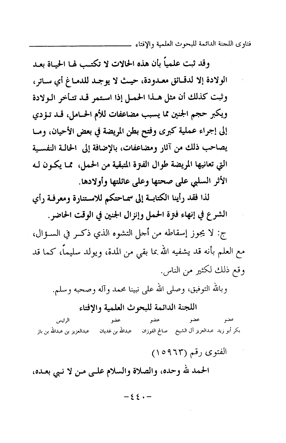 لذا فقد رأينا الكتابة إلى سماحتكم للاستنارة ومعرفة رأي الشرع في إنهاء فترة الحمل وإنزال الجنين في الوقت الحاضر.