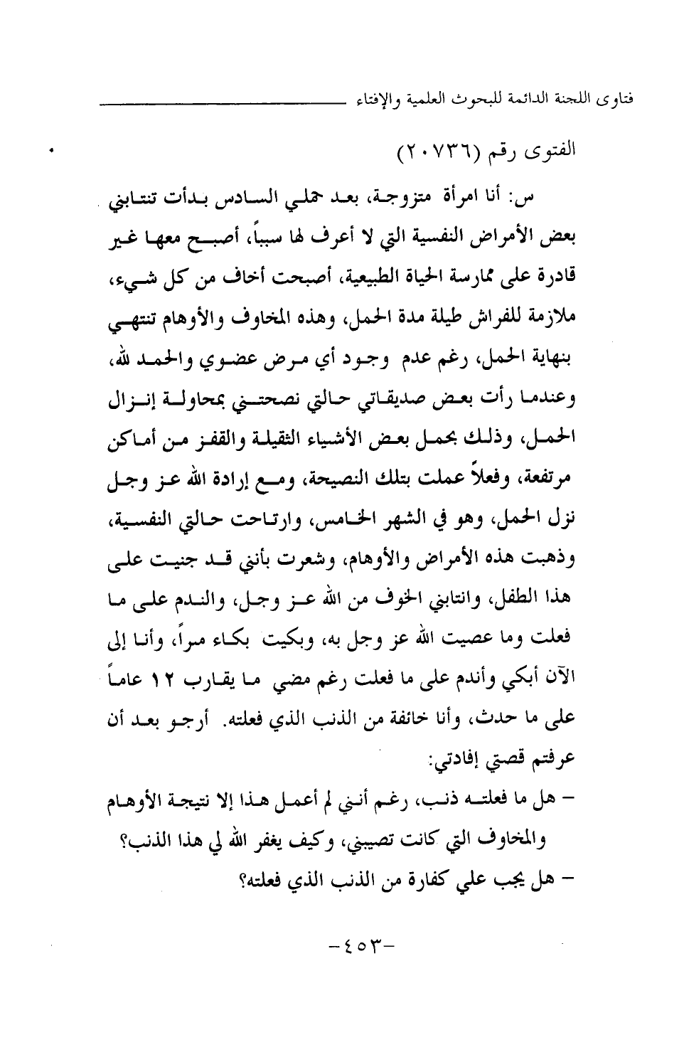 - هل ما فعلته ذنب، رغم أنني لم أعمل هذا إلا نتيجة الأوهام والمخاوف التي كانت تصيبني؟ وكيف يغفر الله لي هذا الذنب؟