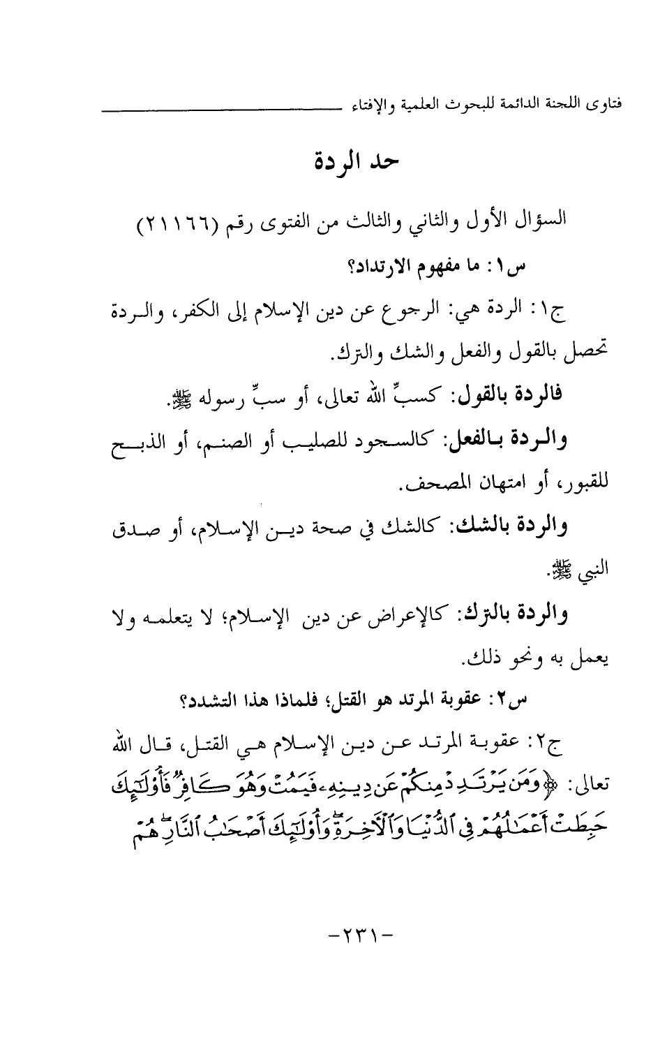 والردة بالفعل: كالسجود للصليب أو الصنم، أو الذبح للقبور، أو امتهان المصحف.