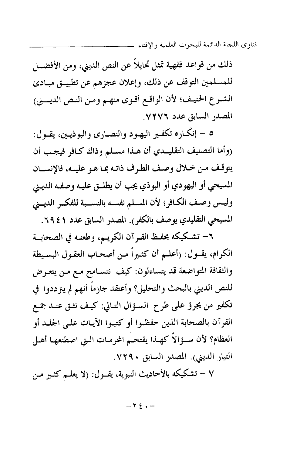 ذلك من قواعد فقهية تمثل تحايلا عن النص الديني، ومن الأفضل للمسلمين التوقف عن ذلك، وإعلان عجزهم عن تطبيق مبادئ الشرع الحنيف؛ لأن الواقع أقوى منهم ومن النص الديني) المصدر السابق عدد 7276.