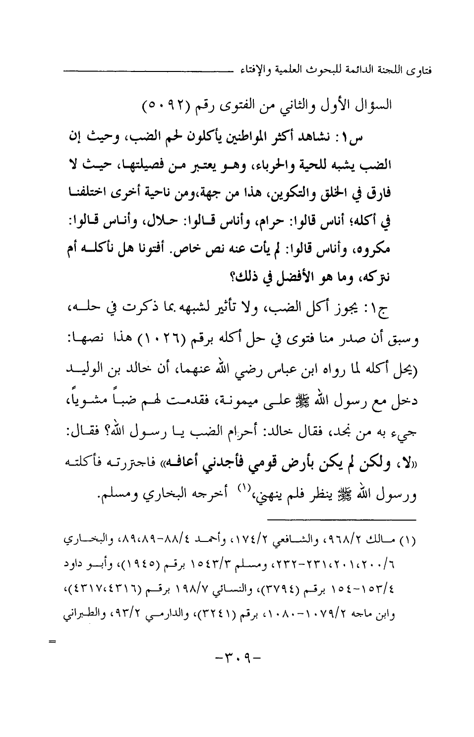 س1: نشاهد أكثر المواطنين يأكلون لحم الضب، وحيث إن الضب يشبه للحية والحرباء، وهو يعتبر من فصيلتها، حيث لا فارق في الخلق والتكوين، هذا من جهة، ومن ناحية أخرى اختلفنا في أكله؟ أناس قالوا: حرام، وأناس قالوا: حلال، وأناس قالوا: مكروه، وأناس قالوا: لم يأت عنه نص خاص. أفتونا هل نأكله أم نتركه، وما هو الأفضل في ذلك؟