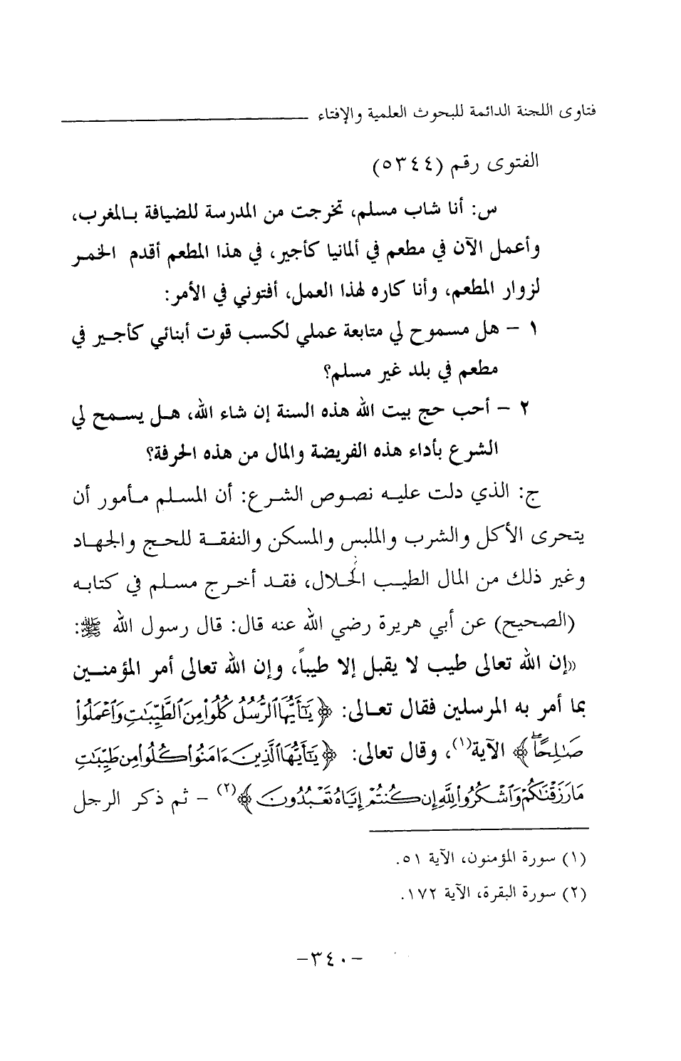 أ- هل مسموح لي متابعة عملي لكسب قوت أبنائي كأجير في مطعم في بلد غير مسلم؟