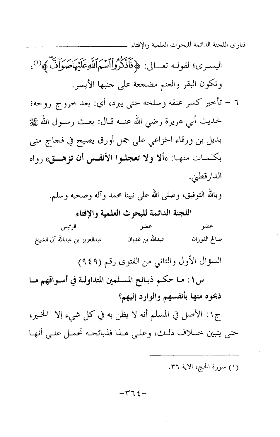 س 1: ما حكم ذبائح المسلمين المتداولة في أسواقهم ما ذبحوه منها بأنفسهم والوارد إليهم؟