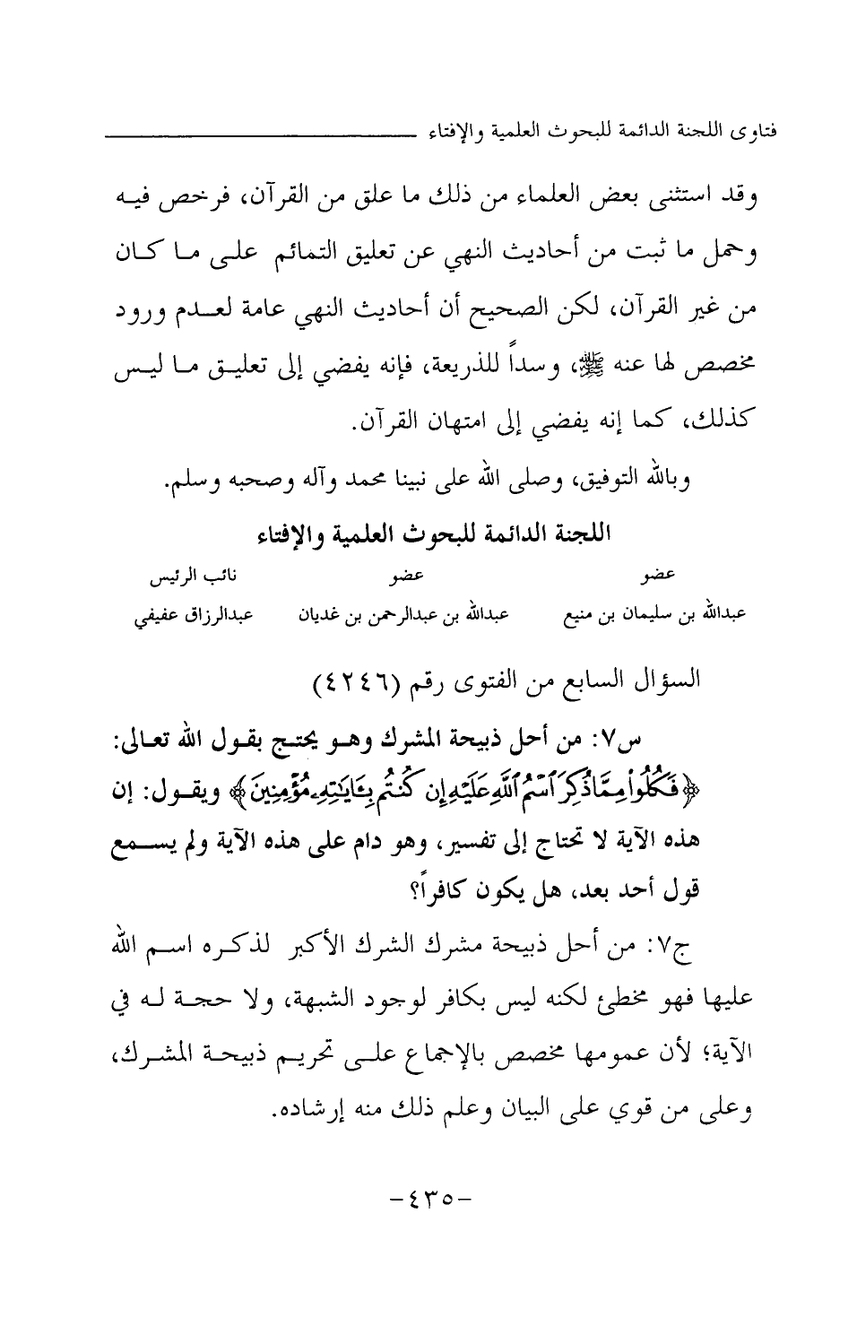 عبد الله بن سليمان بن منيع ... عبد الله بن عبد الرحمن بن غديان ... عبد الرزاق عفيفي
