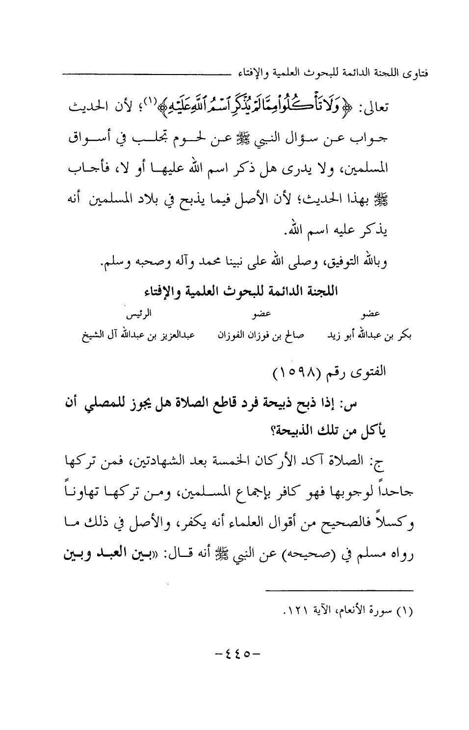 بكر بن عبد الله أبو زيد ... صالح بن فوزان الفوزان ... عبد العزيز بن عبد الله آل الشيخ