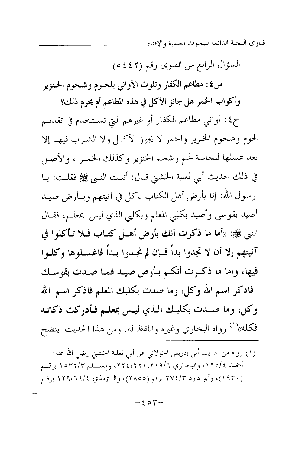 (¬1) رواه من حديث أبي إدريس الخولاني عن أبي ثعلبة الخشني رضي الله عنه: أحمد 4 / 195، والبخاري 6 / 219، 221، 224، ومسلم 3 / 1532 برقم (1930) '' وأبو داود 3 / 274 برقم (2855) ، والترمذي 4 / 64، 129 برقم (1464) ، والنسائي 7 / 181 برقم (4266) ، ش ابن ماحه 2 / 1069 - 1070 برقم (3207) ، وابن حبان 13 / 190 - 191 برقم (5879) ، وابن الجارود (غوث المكدود) 3 / 195 برقم (916) ، والبيهقي 9 / 244، 10 / 10.