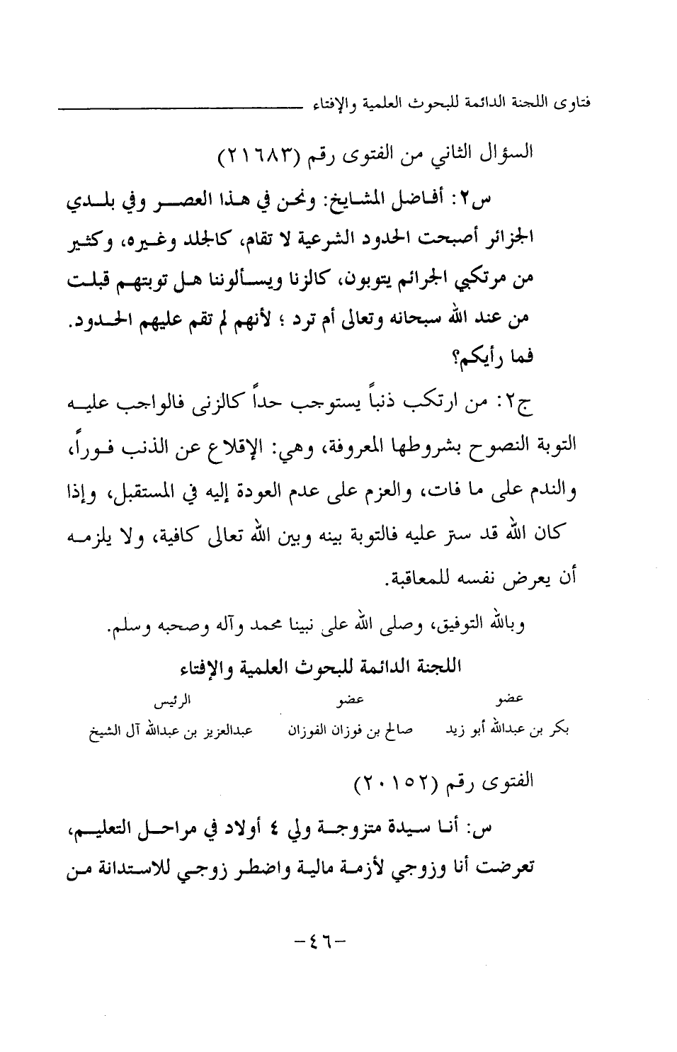 بكر بن عبد الله أبو زيد ... صالح بن فوزان الفوزان ... عبد العزيز بن عبد الله آل الشيخ