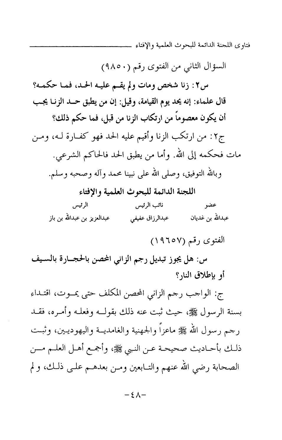 س: هل يجوز تبديل رجم الزاني المحصن بالحجارة بالسيف، أو بإطلاق النار؟