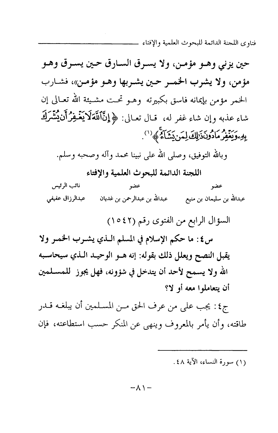 عبد الله بن سليمان بن منيع ... عبد الله بن عبد الرحمن بن غديان ... عبد الرزاق عفيفي