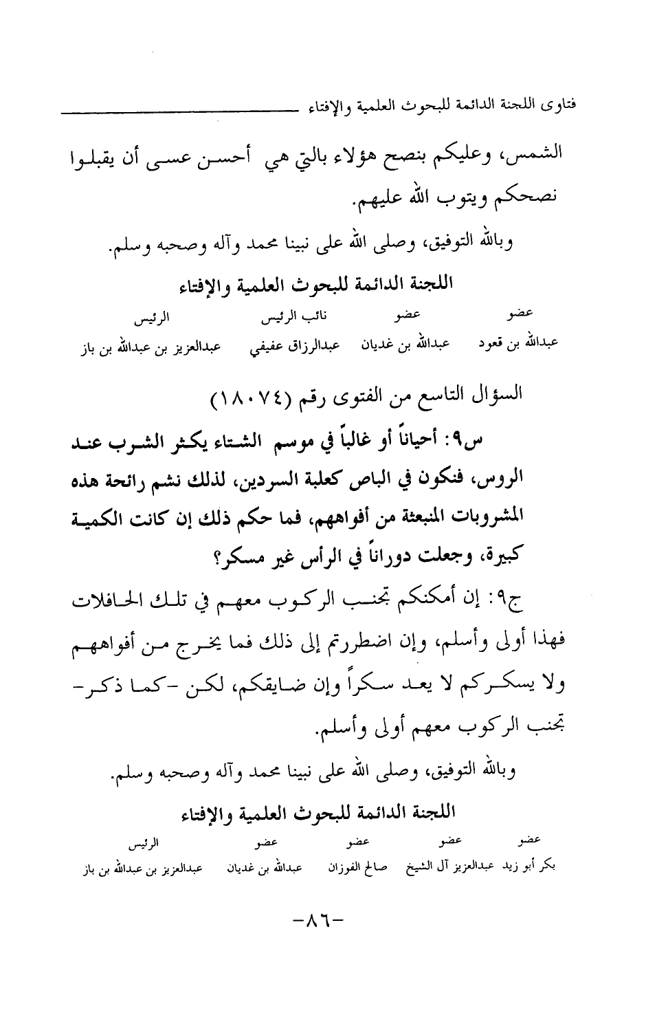 بكر أبو زيد ... عبد العزيز آل الشيخ ... صالح الفوزان ... عبد الله بن غديان ... عبد العزيز بن عبد الله بن باز