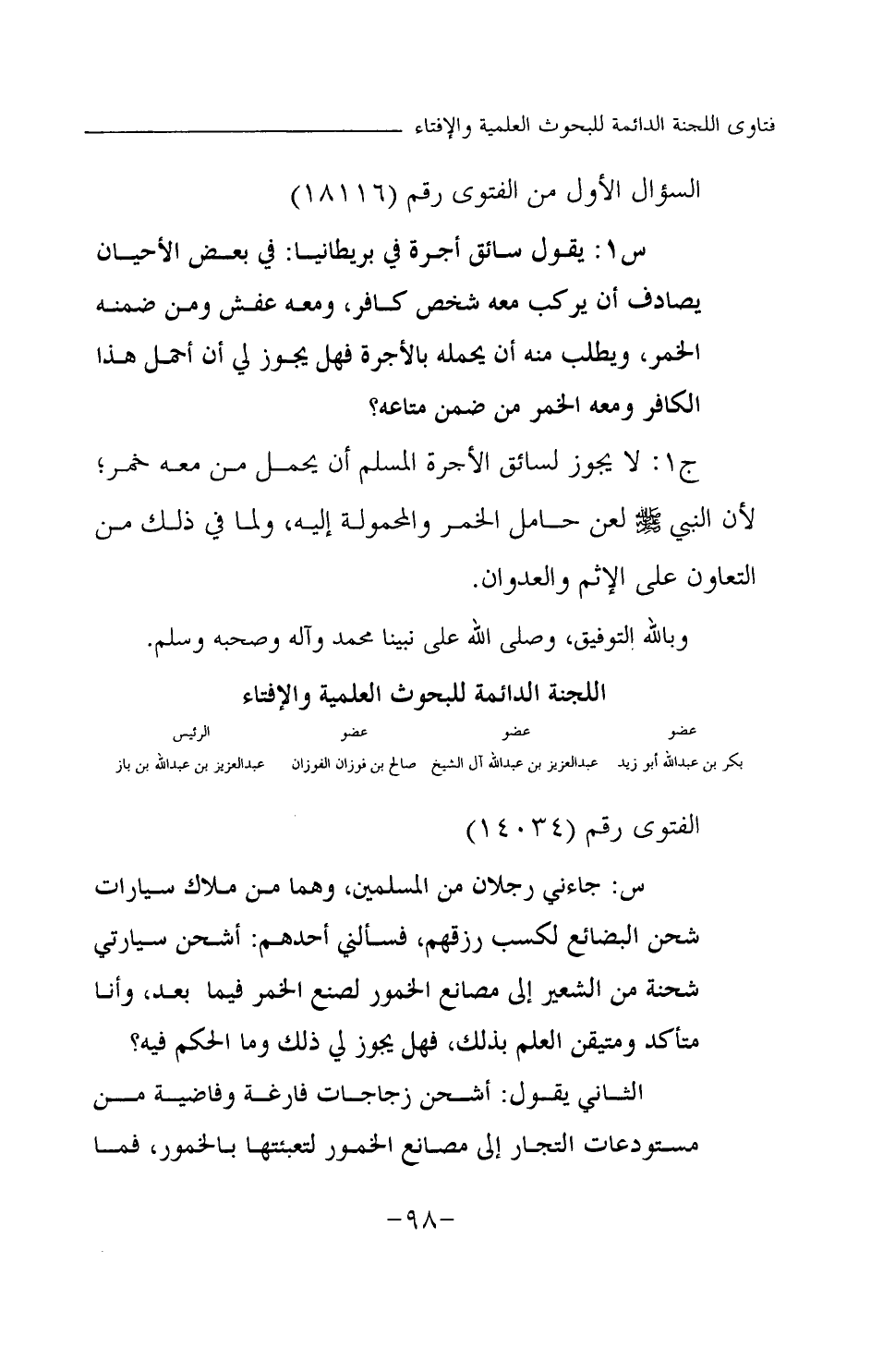 بكر بن عبد الله أبو زيد ... عبد العزيز بن عبد الله آل الشيخ ... صالح بن فوزان الفوزان ... عبد العزيز بن عبد الله بن باز