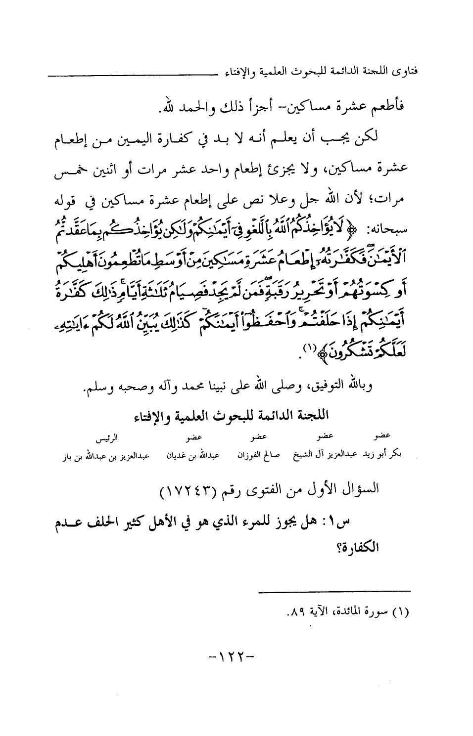 س1: هل يجوز للمرء الذي هو في الأهل كثير الحلف عدم الكفارة؟