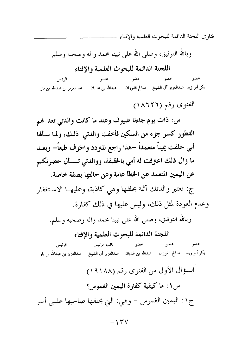 بكر أبو زيد ... عبد العزيز آل الشيخ ... صالح الفوزان ... عبد الله بن غديان ... عبد العزيز بن عبد الله بن باز