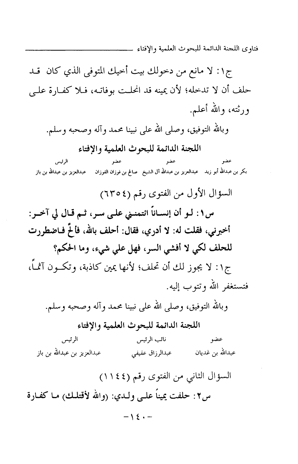 بكر بن عبد الله أبو زيد ... عبد العزيز بن عبد الله آل الشيخ ... صالح بن فوزان الفوزان ... عبد العزيز بن عبد الله بن باز