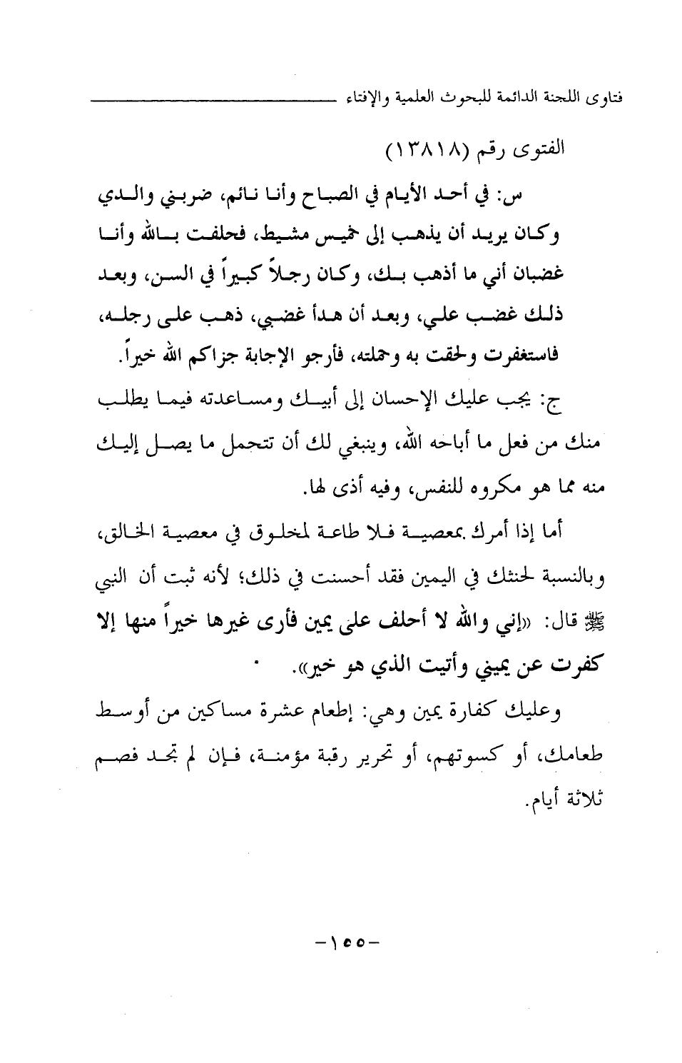 (¬1) صحيح البخاري كفارات الأيمان (6718) ، صحيح مسلم الأيمان (1649) ، سنن ابن ماجه الكفارات (2107) ، مسند أحمد بن حنبل (4/401) .