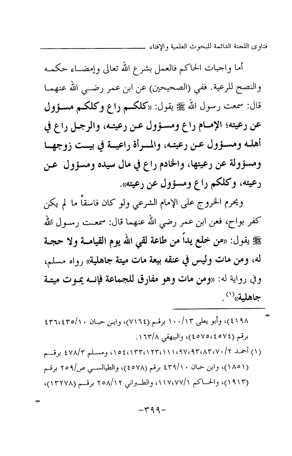 (¬1) صحيح البخاري الجمعة (893) ، صحيح مسلم الإمارة (1829) ، سنن الترمذي الجهاد (1705) ، سنن أبو داود الخراج والإمارة والفيء (2928) ، مسند أحمد بن حنبل (2/121) .