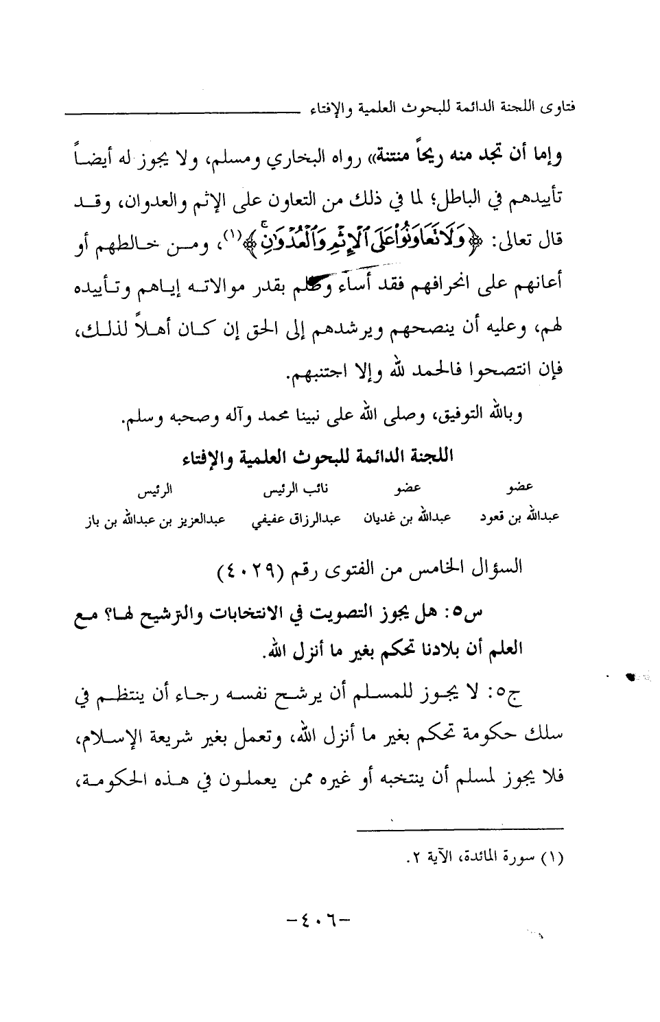 س 5: هل يجوز التصويت في الانتخابات والترشيح لها؟ مع العلم أن بلادنا تحكم بغير ما أنزل الله.