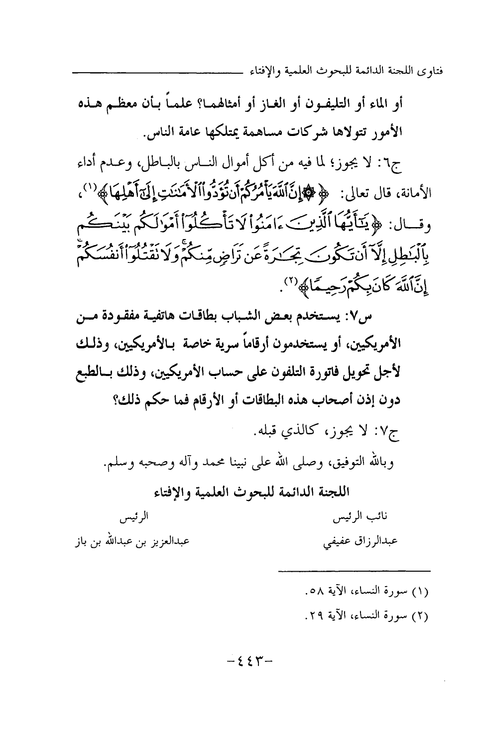 س 7: يستخدم بعض الشباب بطاقات هاتفية مفقودة من الأمريكيين، أو يستخدمون أرقاما سرية خاصة بالأمريكيين، وذلك لأجل تحويل فاتورة التلفون على حساب الأمريكيين، وذلك بالطبع دون إذن أصحاب هذه البطاقات أو الأرقام فما حكم ذلك؟