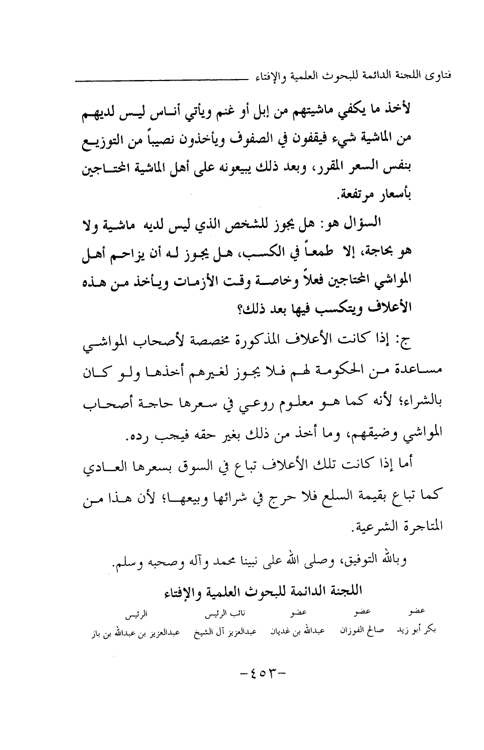 السؤال هو: هل يجوز للشخص الذي ليس لديه ماشية ولا هو بحاجة، إلا طمعا في الكسب، هل يجوز له أن يزاحم أهل المواشي المحتاجين فعلا وخاصة وقت الأزمات ويأخذ من هذه الأعلاف ويتكسب فيها بعد ذلك؟