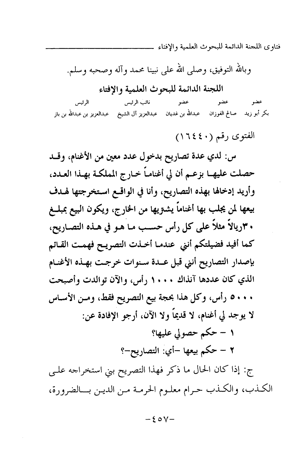 س: لدي عدة تصاريح بدخول عدد معين من الأغنام، وقد حصلت عليها بزعم أن لي أغناما خارج المملكة بهذا العدد، وأريد إدخالها بهذه التصاريح، وأنا في الواقع استخرجتها لهدف بيعها لمن يجلب بها أغناما يشتريها من الخارج، ويكون البيع بمبلغ 300 ريالا مثلا على كل رأس حسب ما هو في هذه التصاريح، كما أفيد فضيلتكم أنني عندما أخذت التصريح. فهمت القائم بإصدار التصاريح أنه قبل عدة سنوات خرجت بهذه الأغنام الذي كان عددها آنذاك 1000 رأس، والآن توالدت وأصبحت 5000 رأس، وكل هذا بحجة بيع التصريح فقط، ومن الأساس لا يوجد لي أغنام، لا قديما ولا الآن، أرجو الإفادة عن: