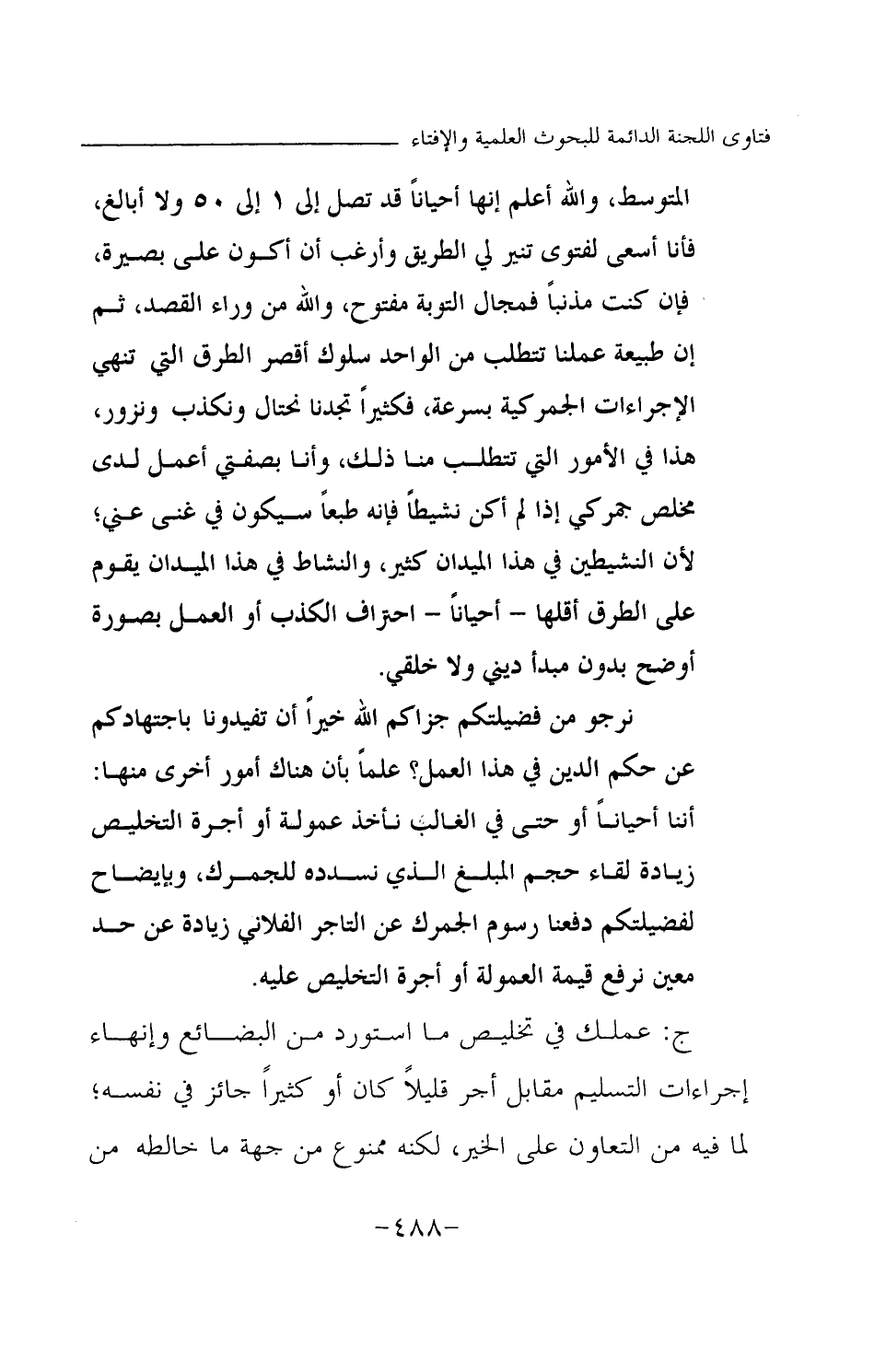 المتوسط، والله أعلم إنها أحيانا قد تصل إلى 1 إلى 50 ولا أبالغ، فأنا أسعى لفتوى تنير لي الطريق وأرغب أن أكون على بصيرة، فإن كنت مذنبا فمجال التوبة مفتوح، والله من وراء القصد، ثم إن طبيعة عملنا تتطلب من الواحد سلوك أقصر الطرق التي تنهى الإجراءات الجمركية بسرعة، فكثيرا تجدنا نحتال ونكذب ونزور، هذا في الأمور التي تتطلب منا ذلك، وأنا بصفتي أعمل لدى مخلص جمركي إذا لم أكن نشيطا فإنه طبعا سيكون في غنى عني لأن النشيطين في هذا الميدان كثير، والنشاط في هذا الميدان يقوم على الطرق أقلها- أحيانا- احتراف الكذب أو العمل بصورة أوضح بدون مبدأ ديني ولا خلقي.