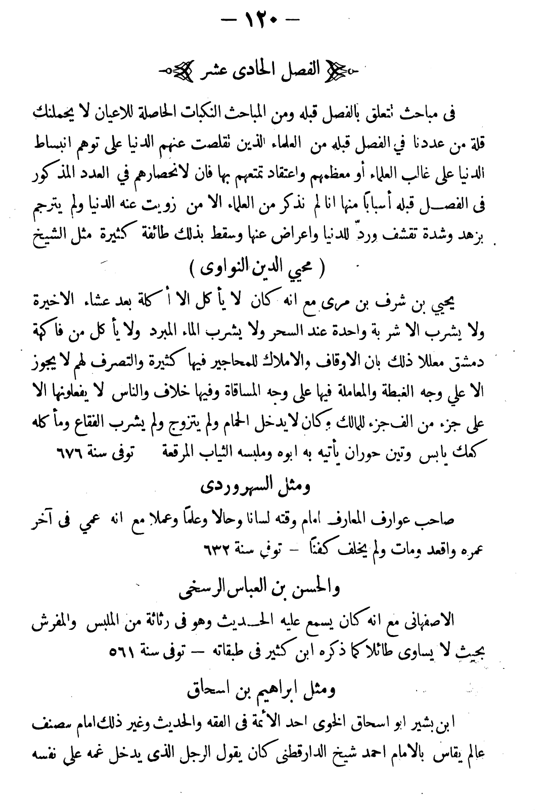 ومن مباحث النكبات الحاصلة للأعيان لا يحملنك قلة من عددنا في الفصل قبله من العلماء الذين تقلصت عنهم الدنيا على توهن انبساط الدنيا على غالبي العلماء أو معظمهم واعتقاد تمتعهم بها، فإن لانحصارهم في العدد المذكور في الفصل قبله أسبابا: منها أنا لم نذكر من العلماء إلا من زويت عنه الدنيا ولم يترجم بزهد وشدة تقشف ورد للدنيا وإعراض عنها، وسقط بذلك طائفة كثيرة مثل الشيخ
