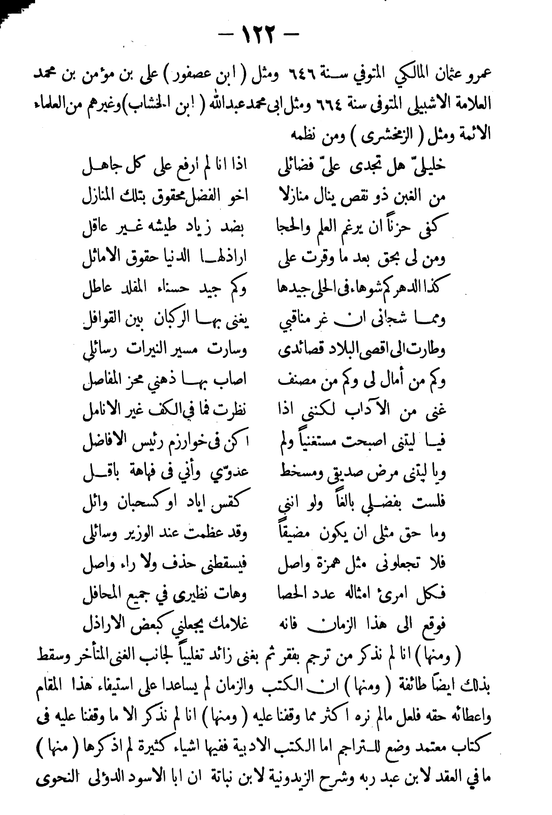 ومثل (ابن عصفور) علي بن مؤمن بن محمد العلامة الاشبيلي المتوفى سنة 644.