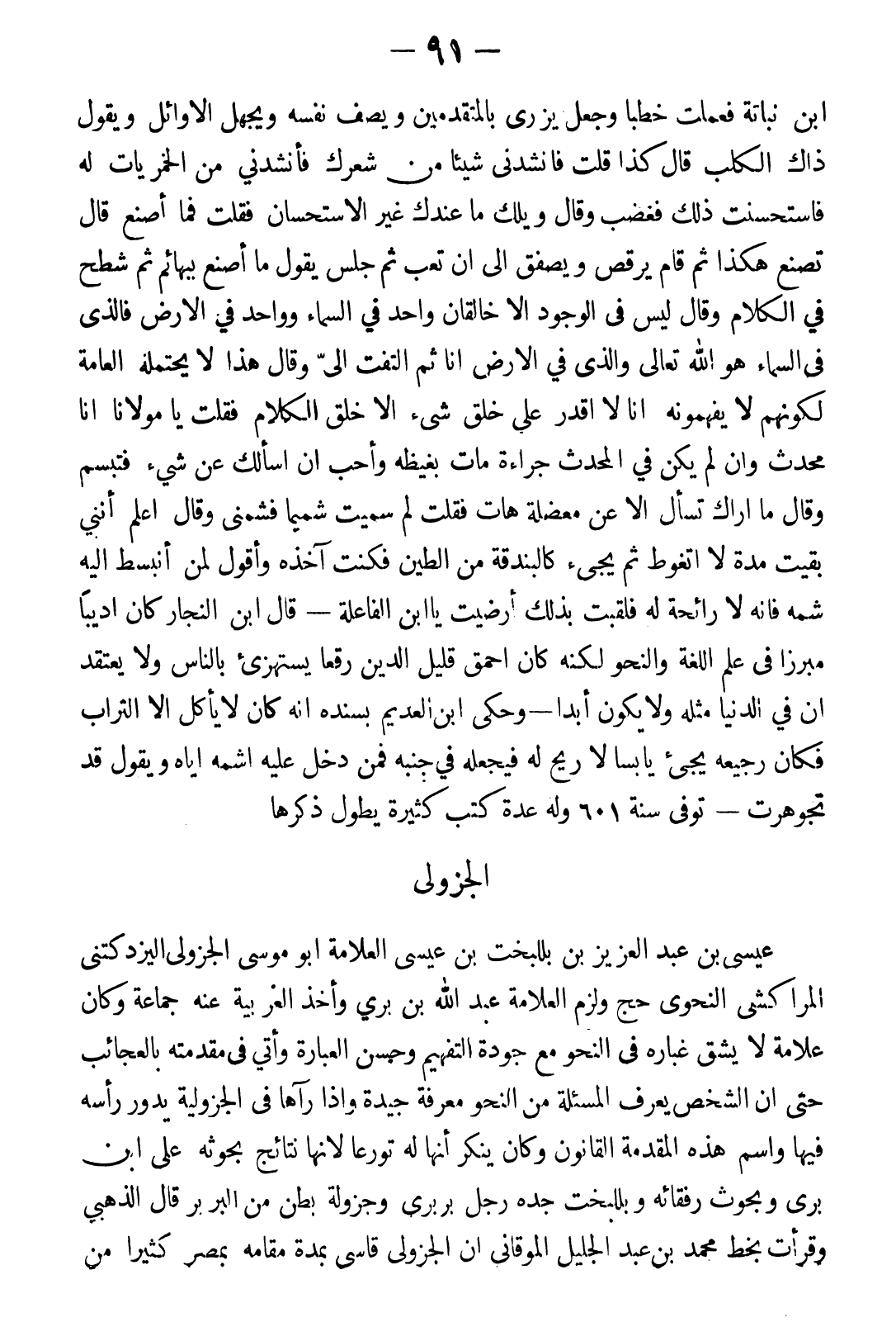 عيسى بن العزيز بن بللبخت بن عيسى العلامة أبو موسى الجزولي اليزدكتني المراكشي النحوي، حج ولزم العلامة عبد الله بن بري وأخذ العربية عنه جماعة، وكان علامة لا يشق غباره في النحو مع جوده التفهيم وحسن العبارة، وأتى في مقدمته بالعجائب حتى أن الشخص يعرف المسألة من النحو معرفة جيدة وإذا رآها في الجزولية يدور رأسه فيها، واسم هذه المقدمة (القانون)، وكان ينكر إنها له تورعا لأنها نتائج بحوثه على ابن بري وبحوث رفقائه. وبللخت جده رجل بربري، وجزولة بطن من البربر. قال الذهبي: وقرأت بخط محمد بن عبد الجليل الموقاني أن الجزولي قاسى بمدة مقامه بمصر كثيرا من
