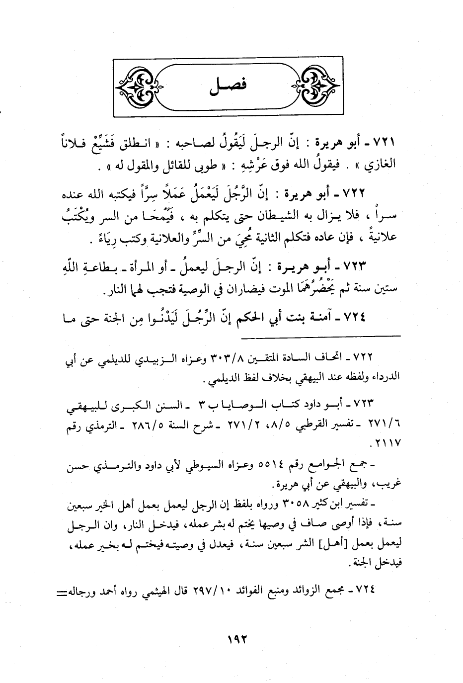 إِن الرجل ليعْمَل أَو الْمَرْأَة بِطَاعَة الله سِتِّينَ سنة ثمَّ يحضرهما الْمَوْت فيضاران فِي الْوَصِيَّة فَتجب لَهما النَّار