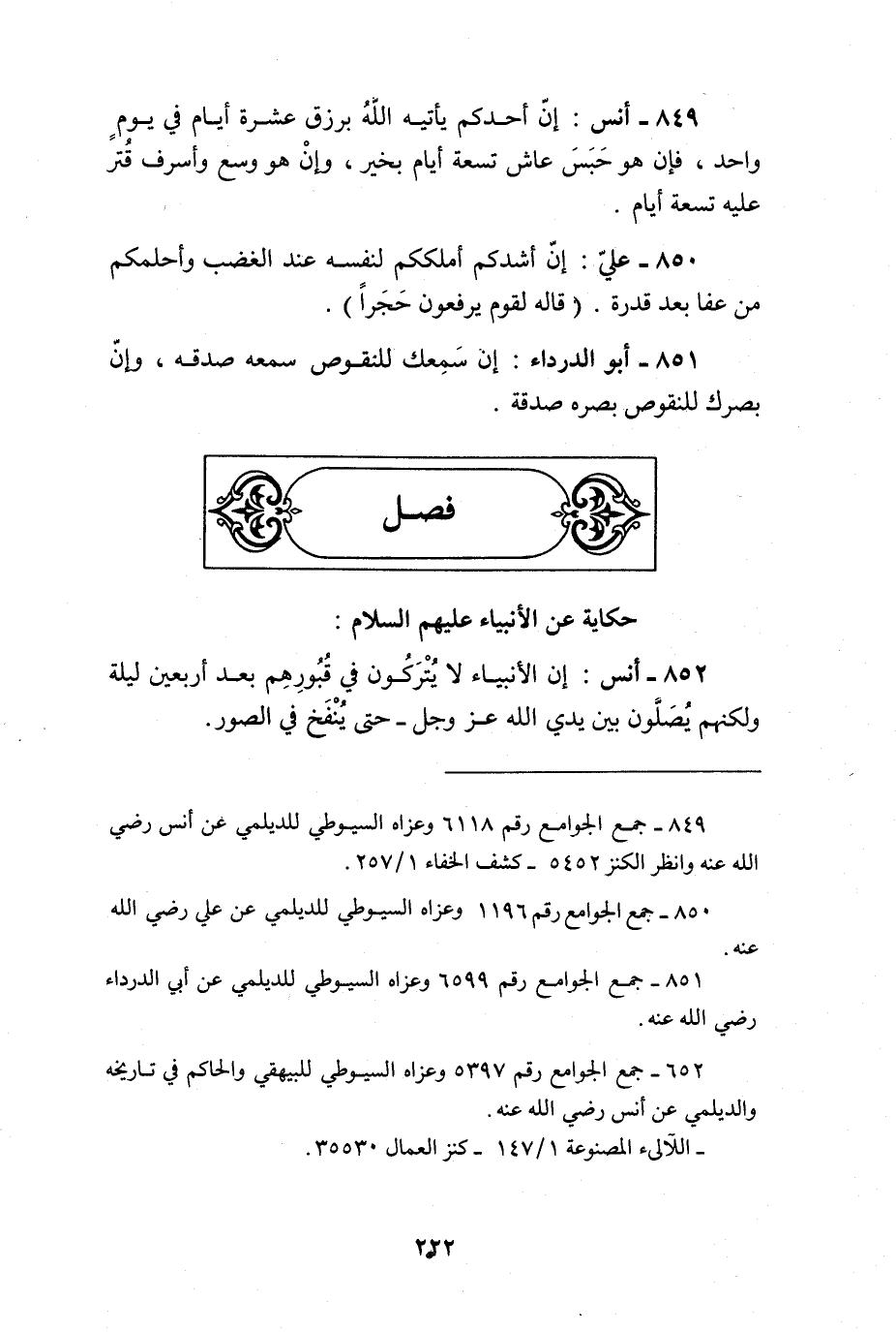 إِن الْأَنْبِيَاء لَا يتركون فِي قُبُورهم بعد أَرْبَعِينَ لَيْلَة وَلَكنهُمْ يصلونَ بَين يَدي الله عز وَجل حَتَّى ينْفخ فِي الصُّور