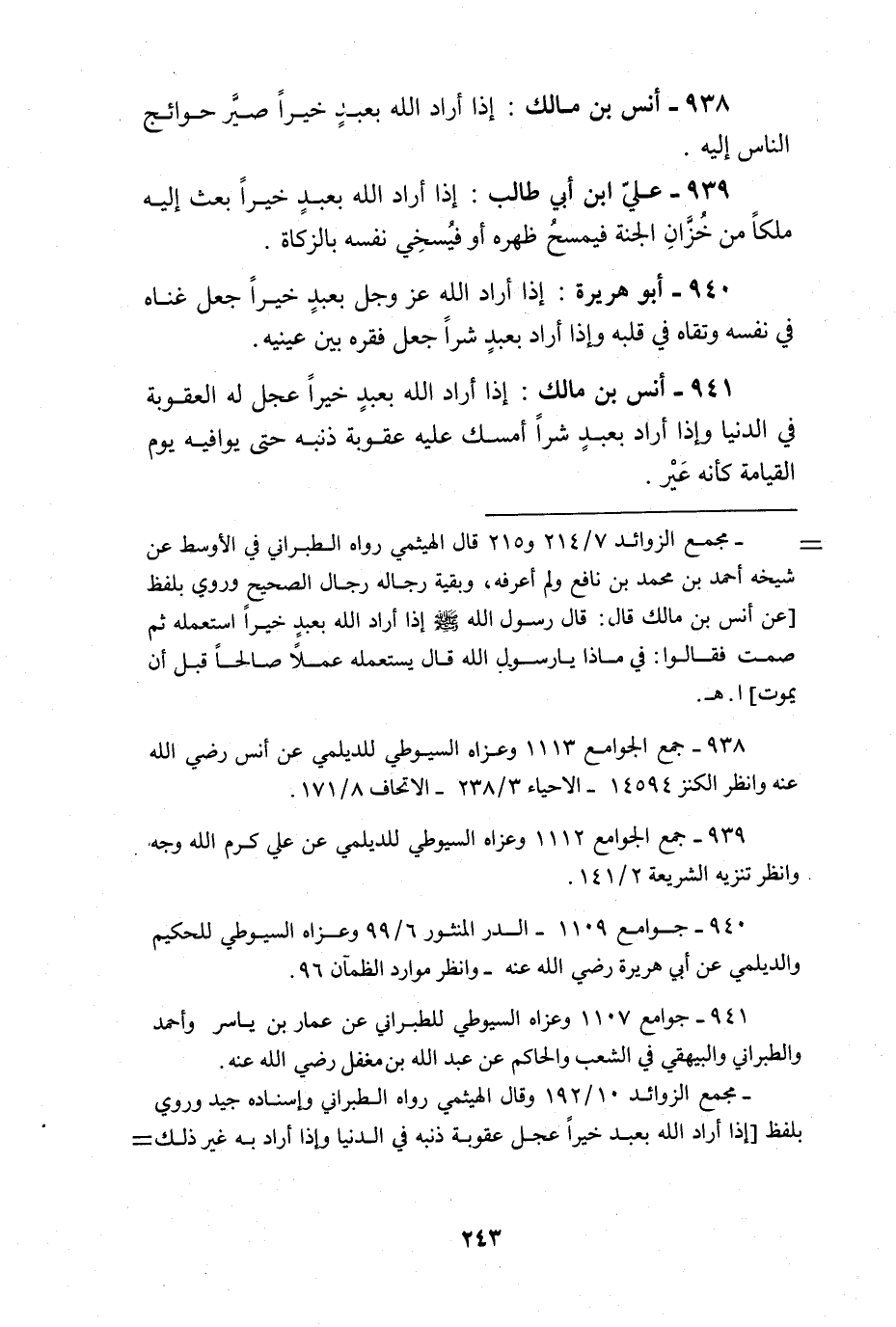 إِذا أَرَادَ الله بِعَبْد خيرا عجل لَهُ الْعقُوبَة فِي الدُّنْيَا وَإِذا أَرَادَ بِعَبْد شرا أمسك عَلَيْهِ عُقُوبَة ذَنبه حَتَّى يوافيه يَوْم الْقِيَامَة كَأَنَّهُ عير